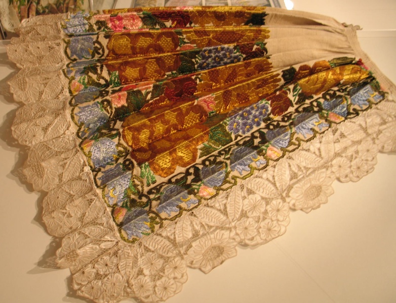 Umijeća prenošena od praslavenske starine, posebice crvenih i bijelih ornamenata u utkivanju, zatim bojanje nebijeljene lanene niti domaćim biljnim bojama, primjerice lukom, šafranom, travom pesevinom i slično, nabavljanja tvorničke i starinske svile talava, kupovnoga pamuka odnosno crnoga, crvenoga ili pravoga pisma, zatim vune utkana su u svaki cerntimetar nabrane neponovljive drevne ljepote.